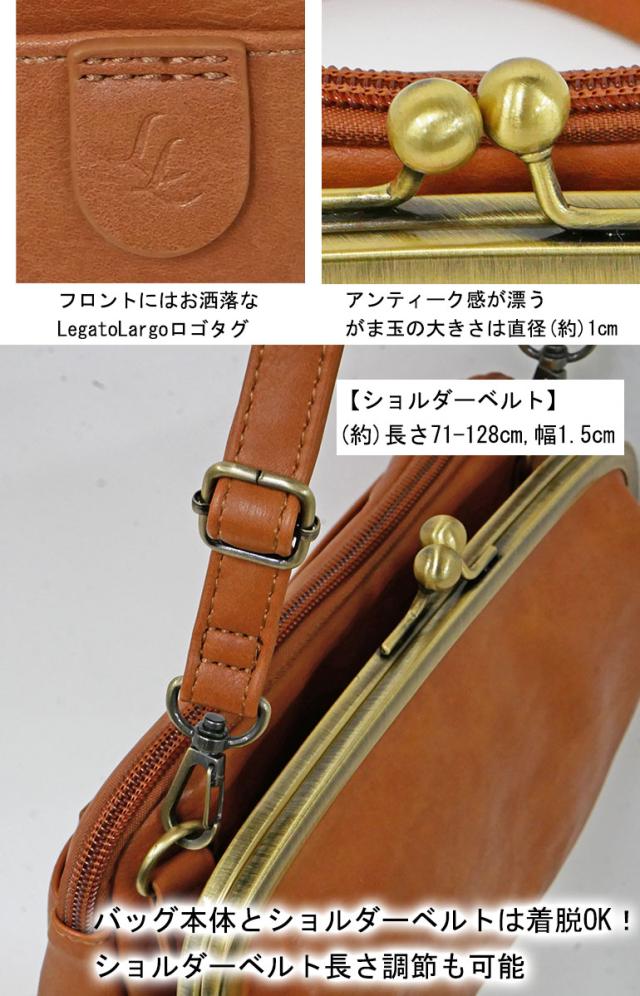 Legato Largo レガートラ ルゴ 口金 がま口 ショルダーバッグ お財布ショルダー 多機能 旅行 デイリー 普段使い 買い物 おでかけ レディース 斜め掛け 軽量 軽い ガバッと大きく開く ポケット たくさん バッグ 合皮 キャッシュレス カードポケット 小銭入れ LGV0424
