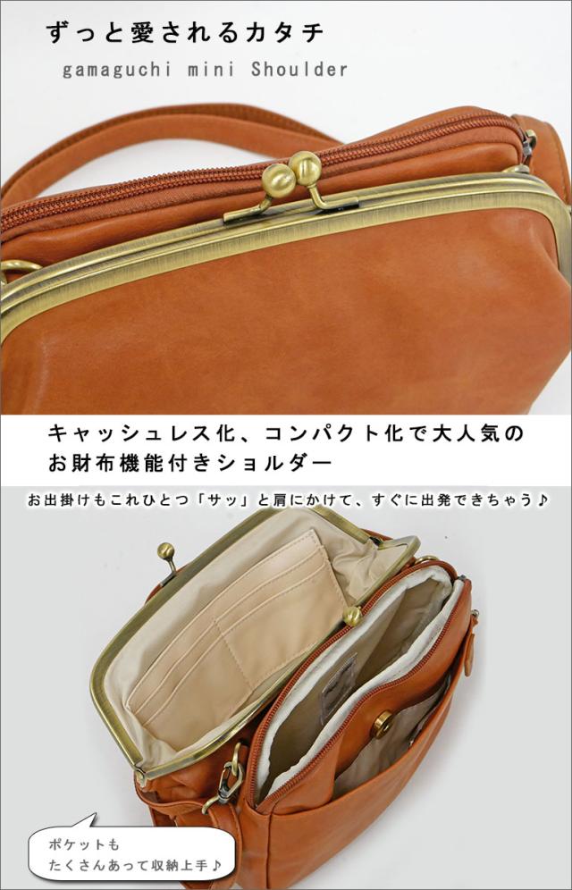 ちょっぴりレトロ感のあるがま口タイプのお財布ショルダーは
