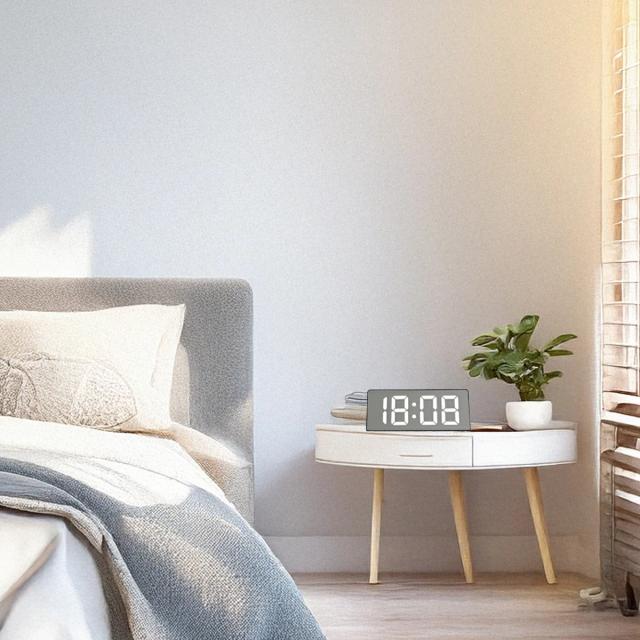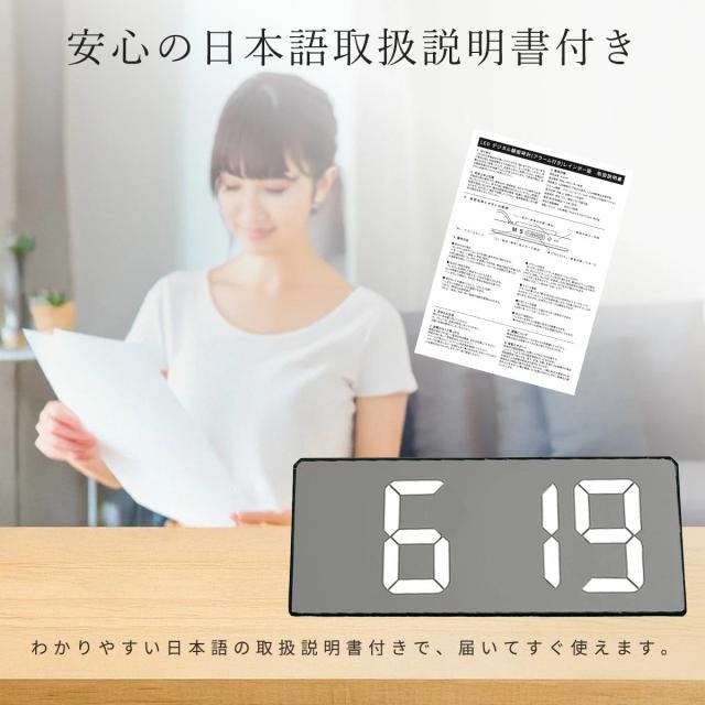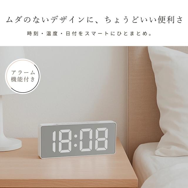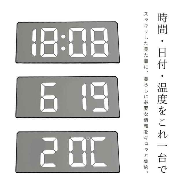見やすい大きな数字で、時刻・日付・温度を一目でチェックできるデジタル時計