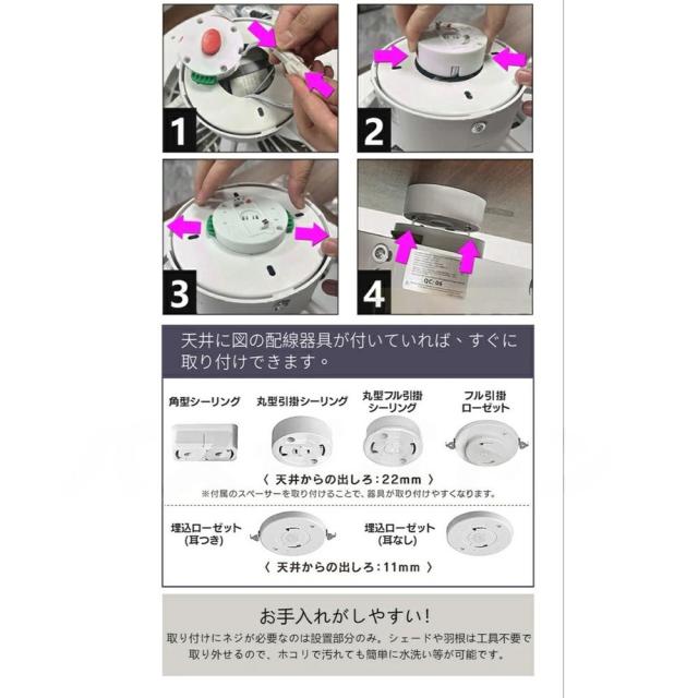 従来の シーリングファンライト と比べて、360°全方位で 首振り することが可能なので