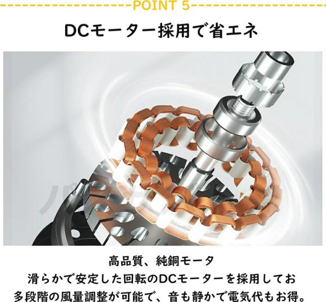 静音に優れたDCモーターで羽を回転。密閉空間の換気対策にも最適。