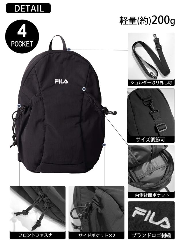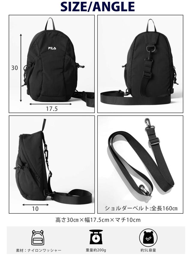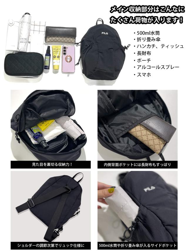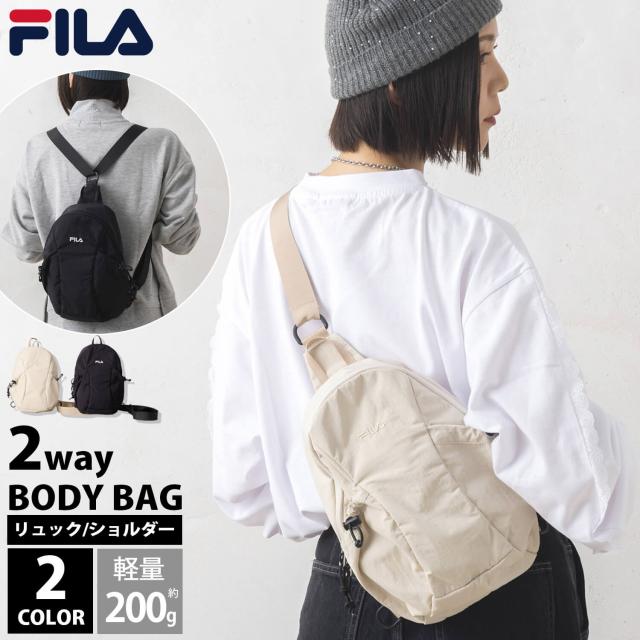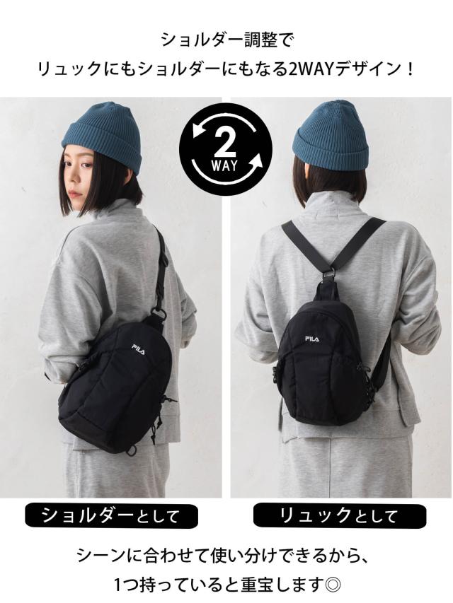 FILA フィラ ボディバッグ 2way ショルダーバッグ リュック レディース ブランド 軽量 丈夫 多収納 斜め掛け 肩掛け メッセンジャーバッグ ワンショルダーバッグ かばん 小さめ コンパクト 黒 通勤 通学 メンズ ユニセックス karlas別注 2025all