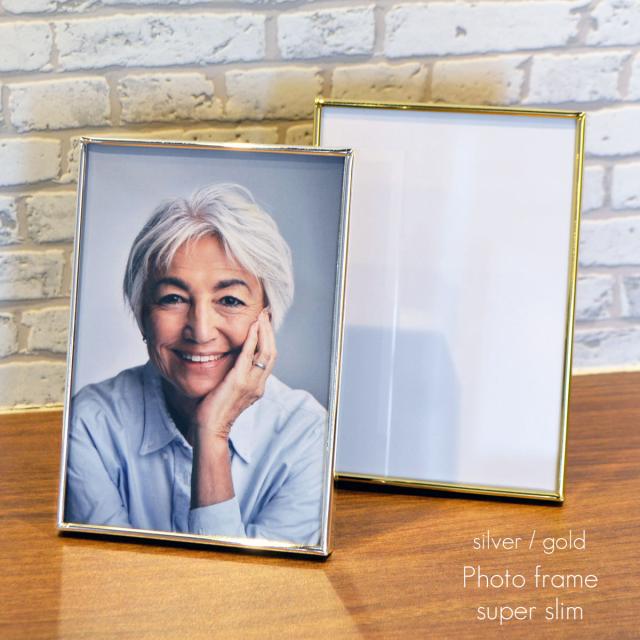 L版写真立て スリムフォトフレーム 013 モダンデザイン おしゃれ シルバー ゴールド フレーム がく 額 遺影写真 手元供養