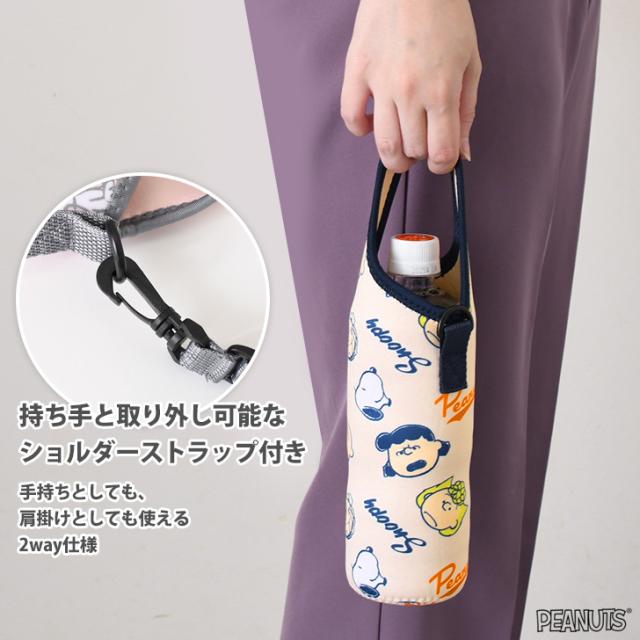 新作 スヌーピー★2wayショルダーストラップ付きボトルホルダー ショルダー 水筒 ペットボトル 保冷 保温 500ml 600ml snoopy キャラクター グッズ 肩掛け 手提げ 手持ち 軽い ポーチ スポーツ
