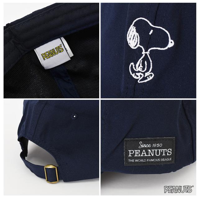 前面にはスヌーピーの刺繍、左サイドにはPEANUTSのロゴタグ付き