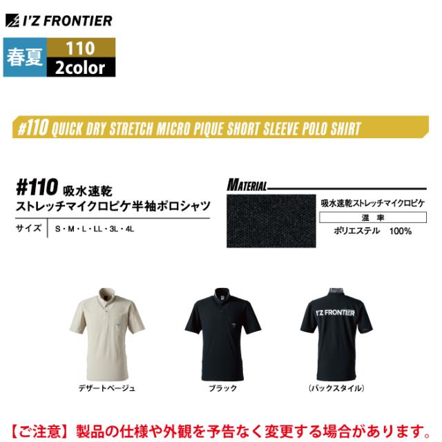 アイズフロンティア 作業服 2025春夏新作 110 半袖ポロシャツ S-4L 作業着 おしゃれ