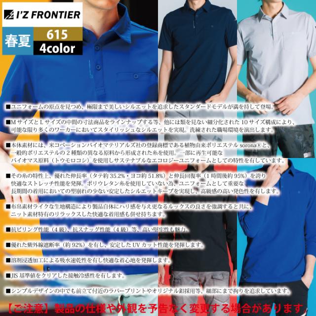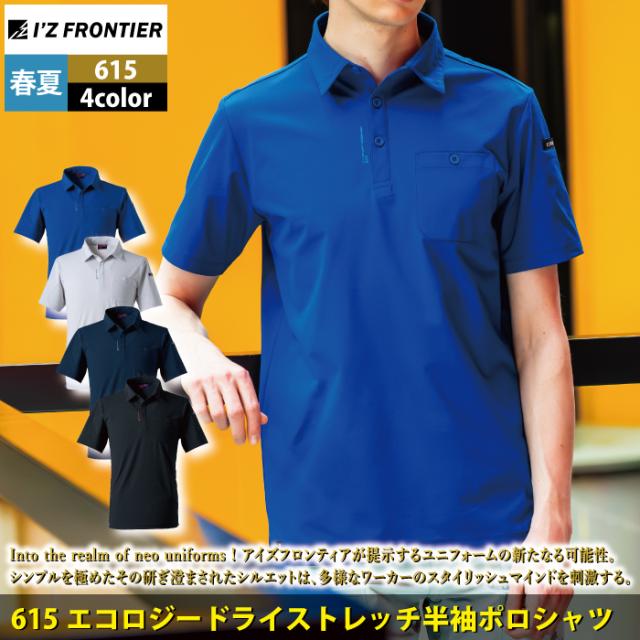 アイズフロンティア 作業服 2025春夏新作 615 ドライストレッチ半袖ポロシャツ S-5L 作業着 おしゃれ