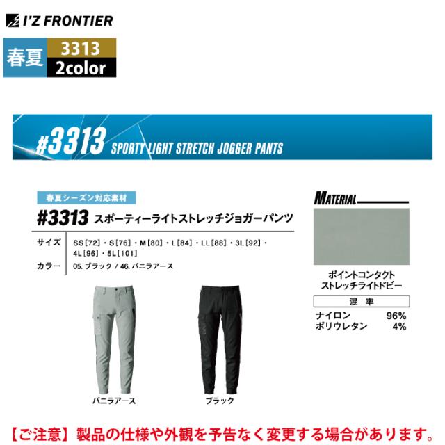 アイズフロンティア 作業服 作業ズボン 2025春夏新作 3313 ストレッチジョガーパンツ SS-5L 作業着 おしゃれ