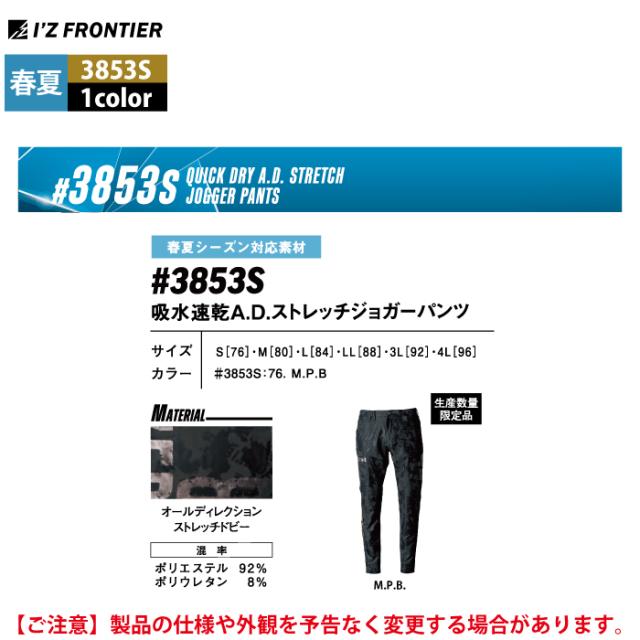 アイズフロンティア 作業服 作業ズボン 2025春夏新作 3853S 速乾ジョガーパンツ S-4L 作業着 おしゃれ