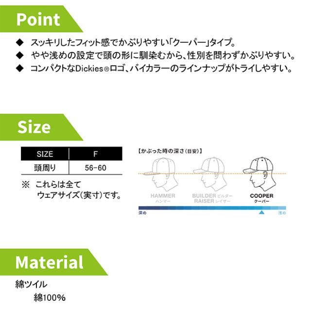 ディッキーズ Dickies 作業服 作業着 オールシーズン D-8226 ワークキャップ(クーパー) F