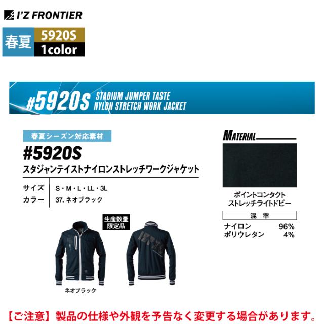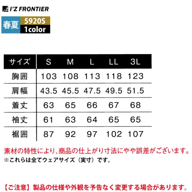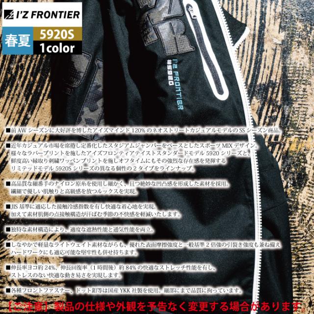 アイズフロンティア 作業服 2025春夏新作 5920S ワークジャケット S-3L 作業着 おしゃれ