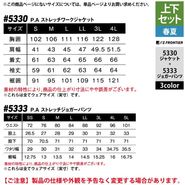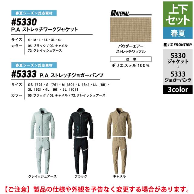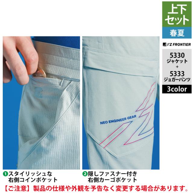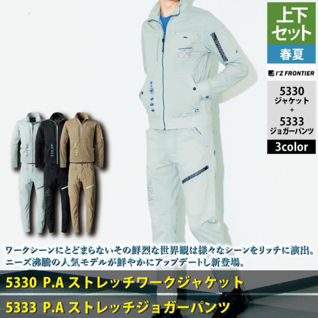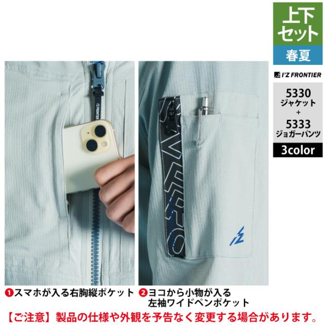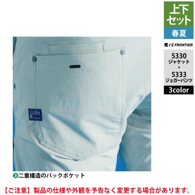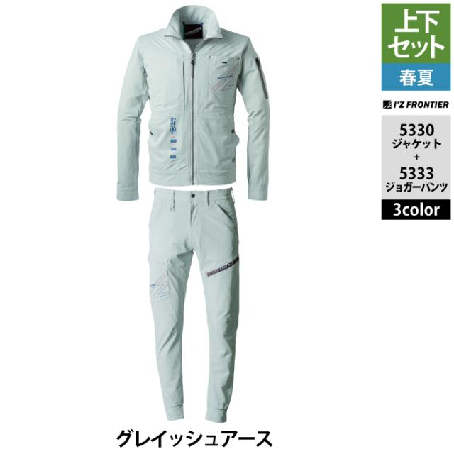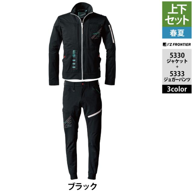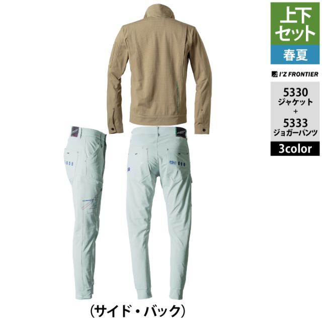 アイズフロンティア 作業服 上下セット 春夏 5330 ワークジャケットS-4L と 5333 ジョガーパンツ SS-5L 作業着 作業ズボン