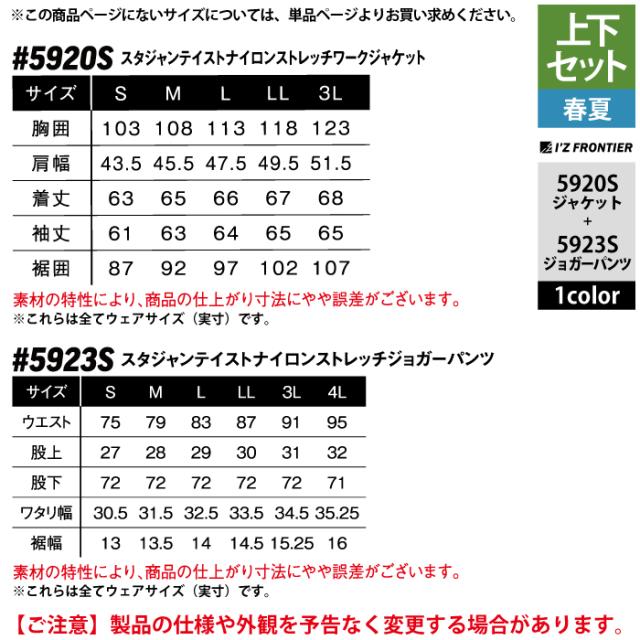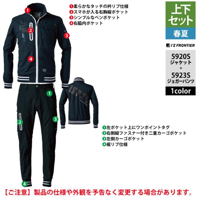 アイズフロンティア 作業服 上下セット 春夏 5920S ワークジャケットS-3L と 5923S ジョガーパンツ S-4L 作業着 作業ズボン