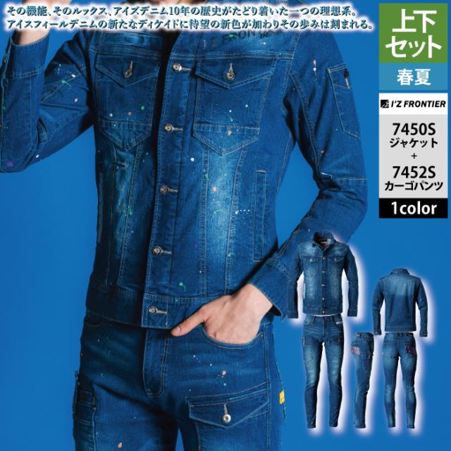 アイズフロンティア 作業服 上下セット 春夏 7450S ストレッチ3DアイスフィールデニムワークジャケットS-4L と 7452S ストレッチ3Dアイスフィールデニムカーゴパンツ 73-101 作業着 作業ズボン