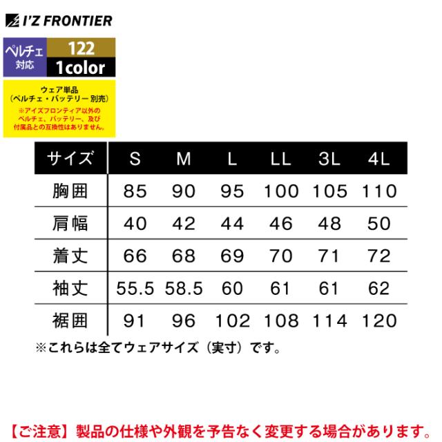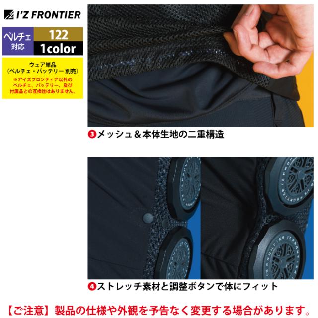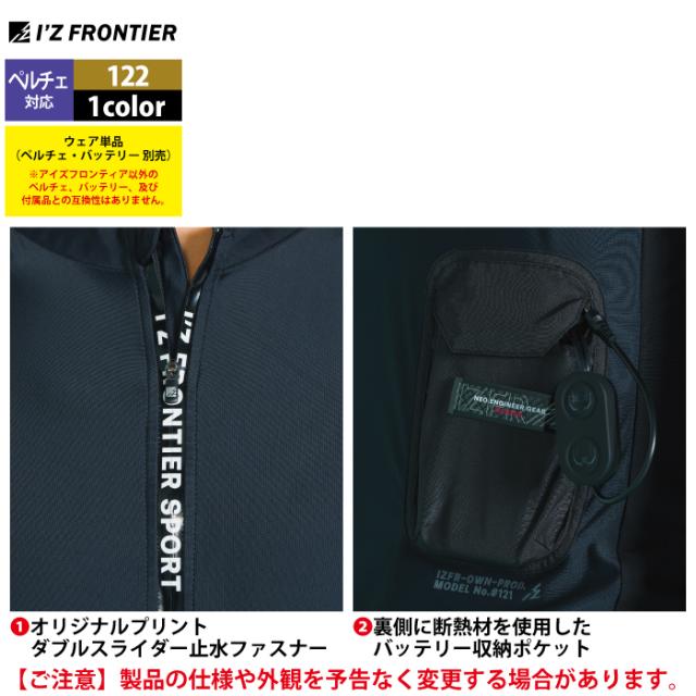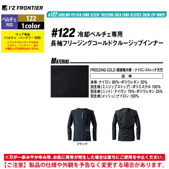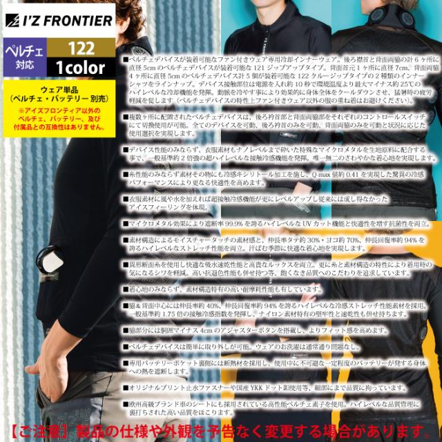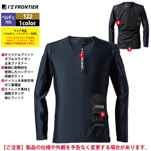 アイズフロンティア 作業服 2025春夏新作 ペルチェ対応ウェア 122 ペルチェ専用長袖ジップアップインナーシャツ単品 M-4L 空調服 作業着 おしゃれ