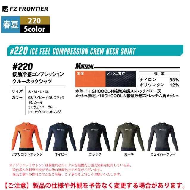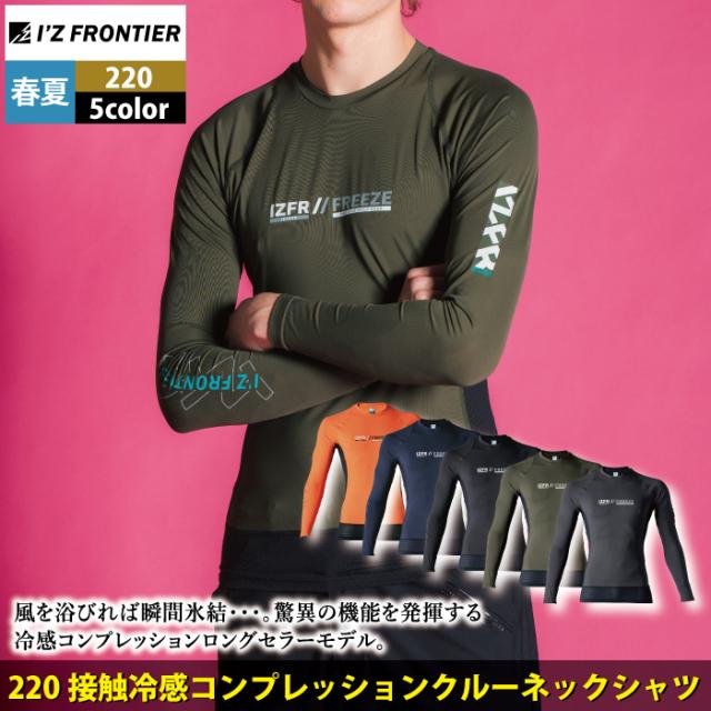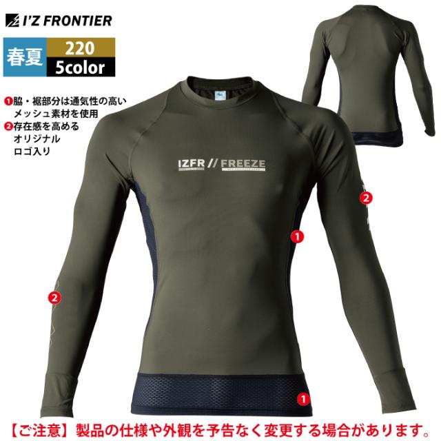アイズフロンティア 作業服 インナー 2025春夏新作 220 コンプレッションクールネックシャツ S-XL 作業着 おしゃれ