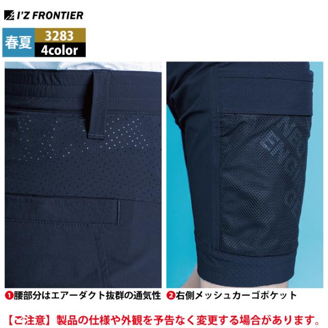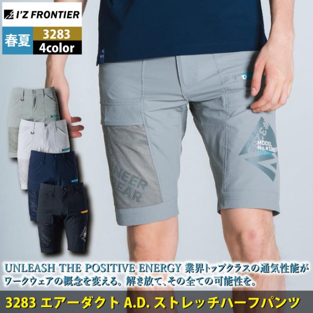 アイズフロンティア 作業服 作業ズボン 2025春夏新作 3283 エアーダクトADストレッチハーフパンツ SS-5L アウトドア 作業着 おしゃれ