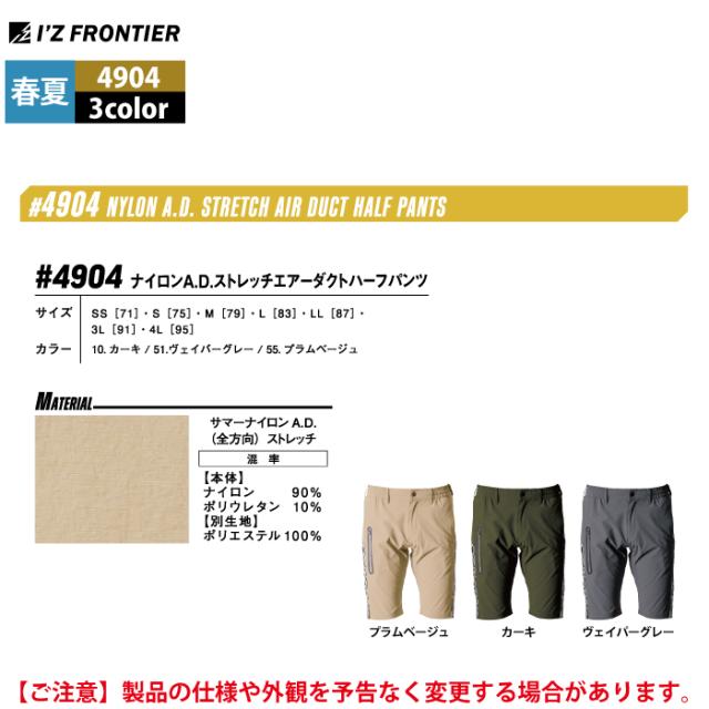 アイズフロンティア 作業服 作業ズボン 2025春夏新作 4904 ハーフパンツ SS-4L アウトドア 作業着 おしゃれ