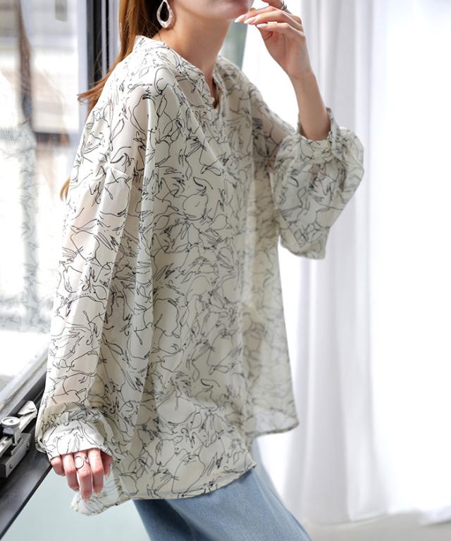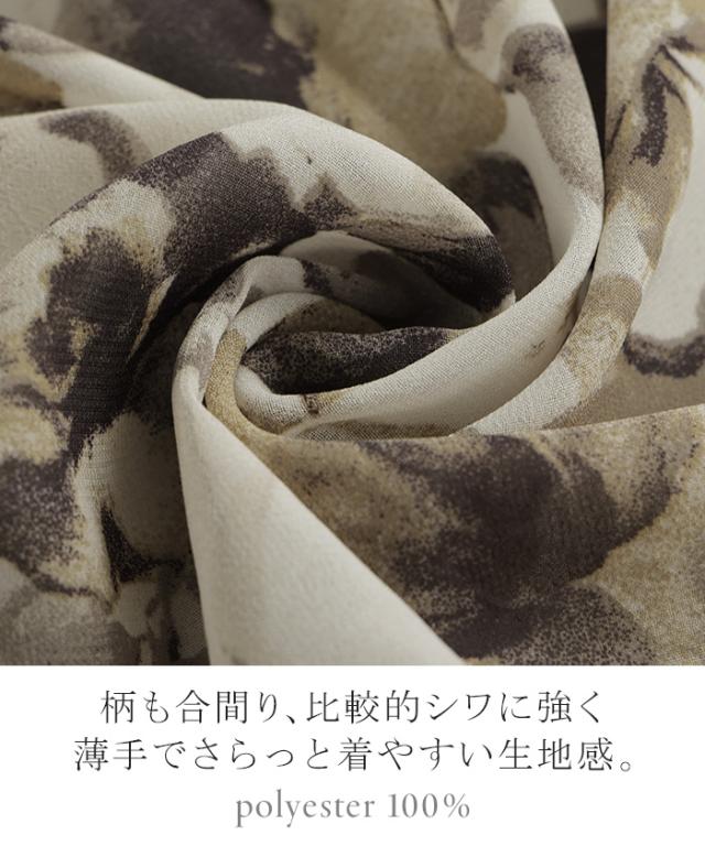 ナチュラルなニュアンスの半柄が女性らしいシフォンブラウスです。