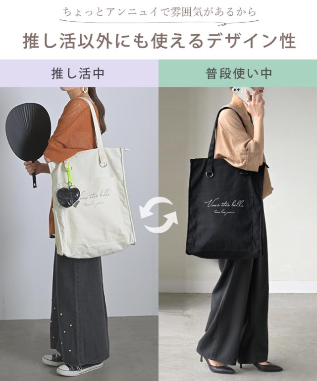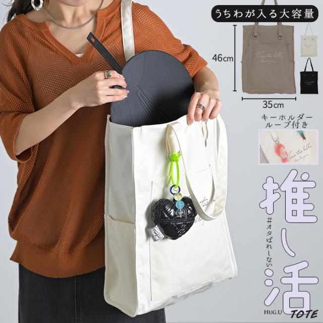 バッグ トート キャンバス レディース 鞄 推し活 遠征 うちわ 旅行 コンサート ライブ 参戦 推し トートバッグ 大容量 アイドル オタ活 収納 マチあり A4 多収納 シンプル 2way ループ付き かばん シンプル 現場 通勤 通学 黒 白 春 夏 HUG.U 秋新作