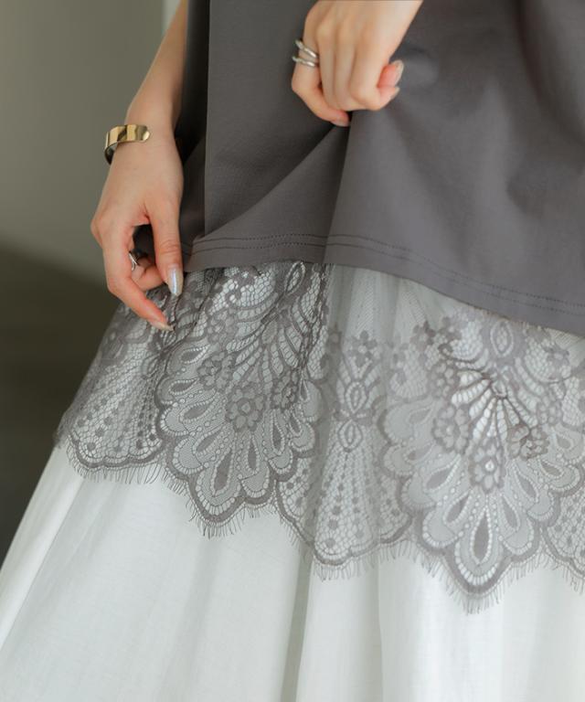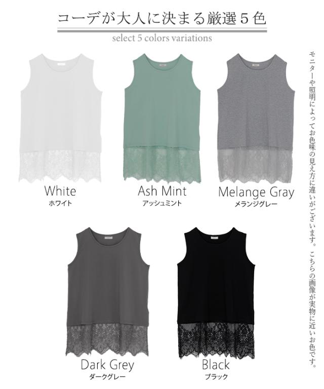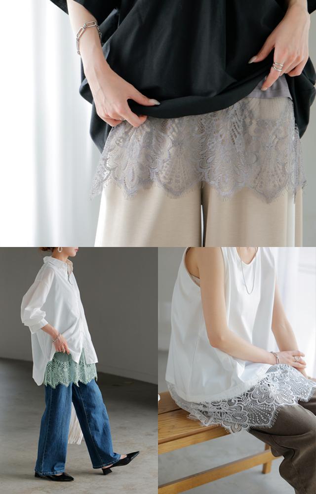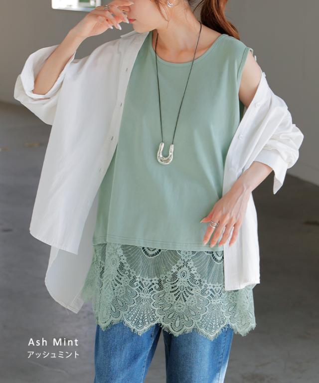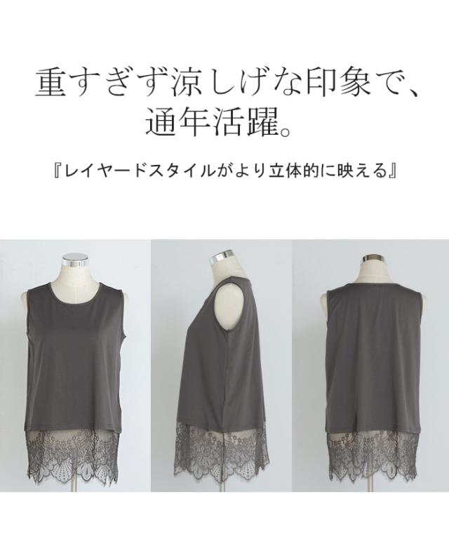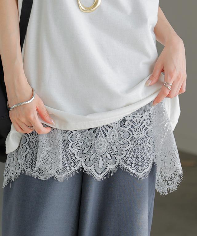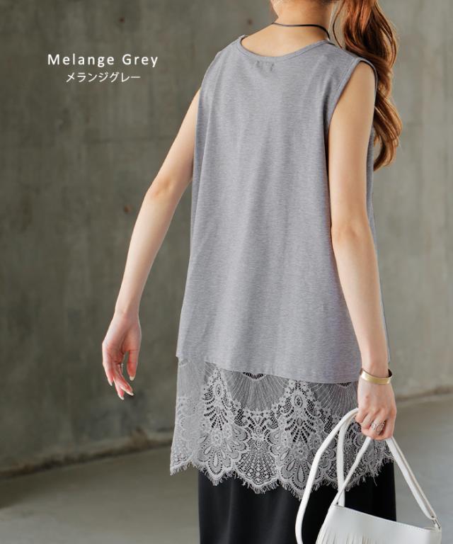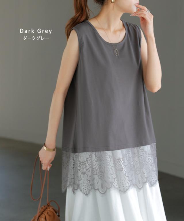ドッキングデザインで華やかな印象の裾レースタンクトップです。