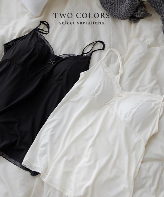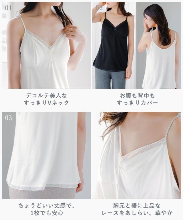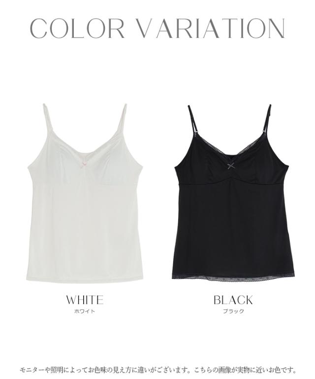 ブラトップ キャミソール カップ付き インナー トップス キャミ レディース 肩紐 調節可能 無地 ロング ルームウェア パジャマ ノンワイヤー 長い 重ね 付け裾 レース 裾 ゆったり きれいめ 大きいサイズ 黒 白 春 夏 HUG.U メール便