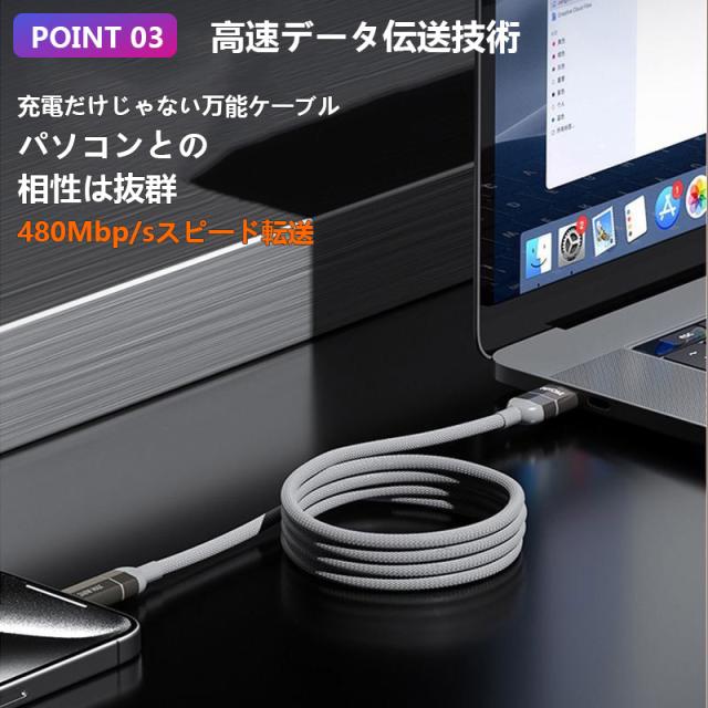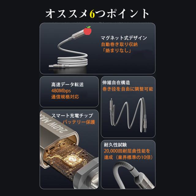 即納 iphone 充電ケーブル PD 対応 急速 充電 充電器 240w 4in1 高速充電 データ同期 データ転送 マグネット式 Android