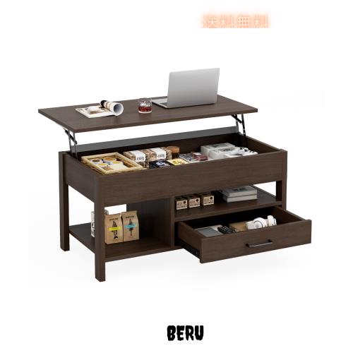 IKIFLY ローテーブル 昇降式 木製 コーヒーテーブル 引き出し付き テーブル 収納付き センターテーブル 大容量収納リビングテーブル 高さ