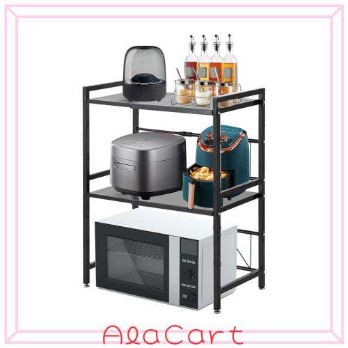 【柔軟性と伸縮性】:トースターラックは左右に42〜64cm伸縮でき、仕切りは上下に5.5cm調整でき、さまざまな電子レンジやその他のキッチン家電に適しています。 キッチンの限られたスペースを無駄にせず、便利で快適な調理空間を演出します。