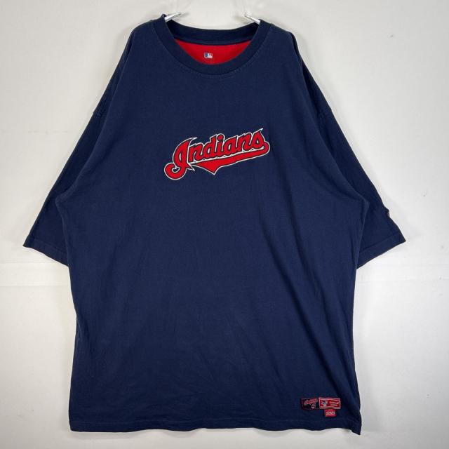 古着 ジェニュイン・マーチャンダイズ 半袖Tシャツ MLB インディアンズ 肉厚 大きいサイズ クルーネック 2XL ネイビー 無地 メンズ