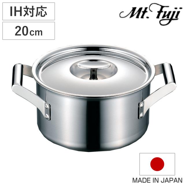 両手鍋 20cm 深型 IH対応 エレックマスター プロ ステンレス製 日本製 フジノス ( ガス火対応 アルミ ステンレス 蓋付き 鍋 なべ 両手なべ 20センチ フタ付き 3層構造 国産 丈夫 熱伝導 シンプル 職人 本格 燕三条 調理器具 )