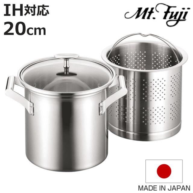 パスタポット 20cm IH対応 エレックマスター プロ ステンレス製 日本製 フジノス ( ガス火対応 パスタ鍋 両手鍋 アルミ ステンレス ザル付き 蓋付き 20センチ 深型 半寸銅鍋 フタ付き 中かご付き 茹でる 3層構造 国産 燕三条 )