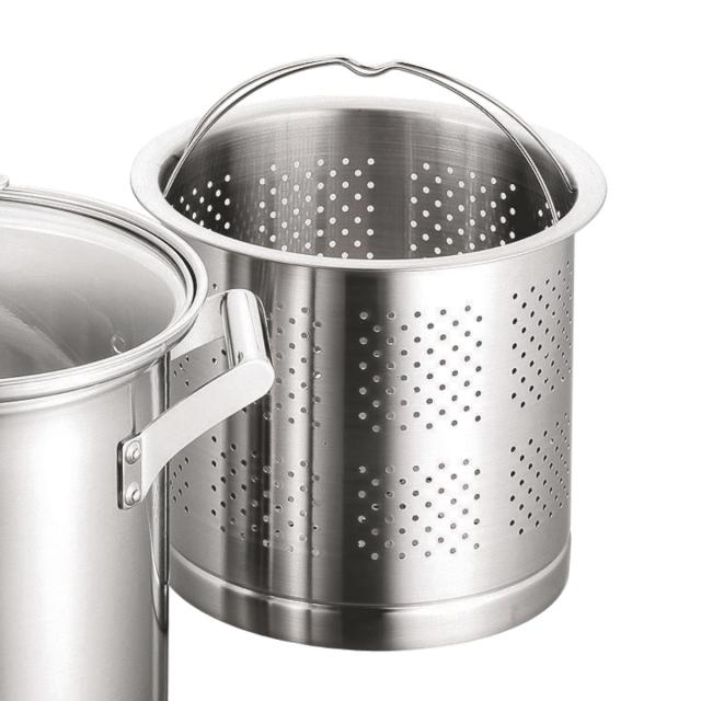 ストレーナー付きなので、持ち上げるだけでパスタやうどん、ラーメンなど麺類の湯切りが簡単にできます。普通の両手鍋としてももちろん使えるので、大人数分のスープや煮込み料理に活躍します。