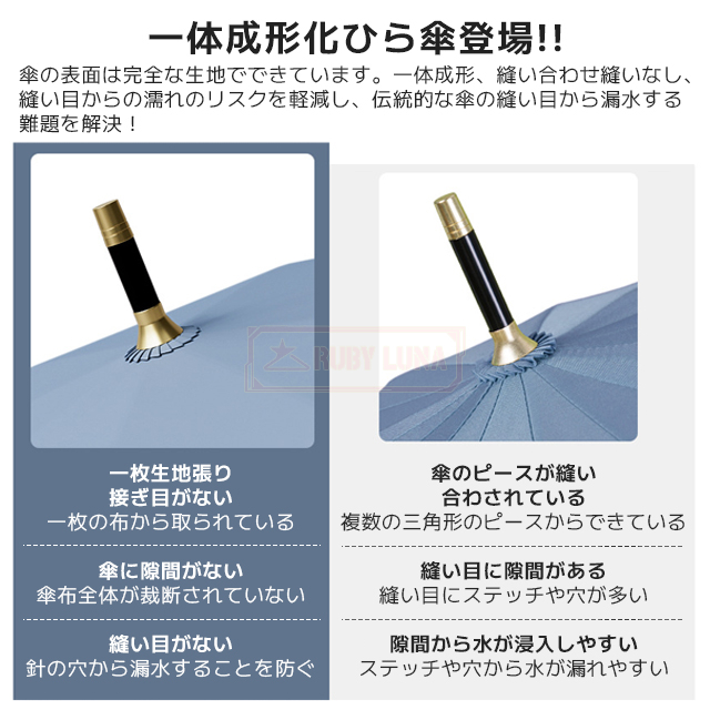 | 一体成形花びら傘登場 | ◆傘の表面は完全な生地でできています。 ◆一体成形、縫い合わせ縫いなし、縫い目からの濡れのリスクを軽減し、伝統的な傘の縫い目から漏水する難題を解決した。 |