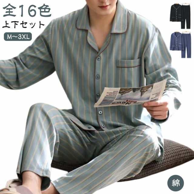 ルームウェア 上下セット 寝巻き 紳士 旦那 前開き パジャマ メンズ 長袖 無地 テーラー襟 シャツ 父の日 プレゼント ストライプ 男性 秋冬 春 男の子 綿 チェック 総柄 ナイトウェア コットン ギフト プレゼント 敬老の日 誕生日 オールシーズン
