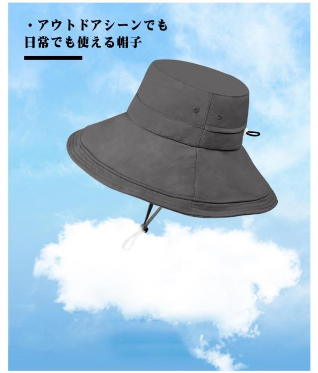 自転車 大きいサイズ 折りたたみ 防水 帽子 60cm サイズ調整可能 帽子 つば広ハット 日焼け防止 紫外線対策 ナイロン つば長 あご紐 日よけ 旅行 レインハット ウォーキング 散歩 飛ばない 春