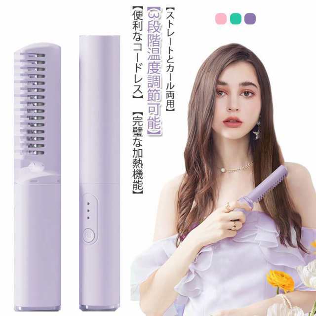 コードレス ミニヘアアイロン 急速加熱 カール ストレート 2way ストレートアイロン USB充電式 軽量 ヘアーアイロン カールアイロン 携帯用 コンパクト 持ち運び 小型 3段階温度調整 家庭 旅行用 プレゼント