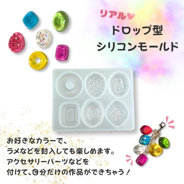 シリコンモールド レジン ドロップ シリコン モールド レジン型 あめ アメ 飴 キャンディ ドロップス スイーツ アクセサリー パーツ キーホルダー アロマストーン ハンドメイド クラフト用 型枠 レジンモールド