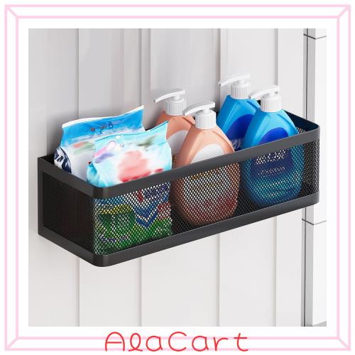 多機能磁気洗濯機サイドラック マグネット 小物入れ 洗剤ラック 洗濯機横 収納 調味料ラック かご 収納 穴あけ不要 大容量 (黒, W35cm*D1