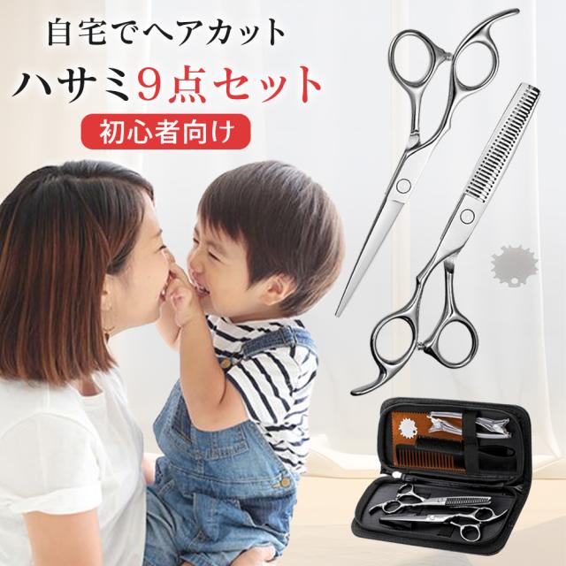 【家族全員で使える!経済的!】散髪ハサミ 9点セット セルフカット ハサミ者用 ヘアカット ハサミ すきバサミ 髪切りハサミ 美容師 ハサミセット 低すき率 家庭用 子供用 ペット ステンレス 高品質 軽量 ヘアカットシザー 前髪カット用 ハサミ ヘアカット 散髪はさみ
