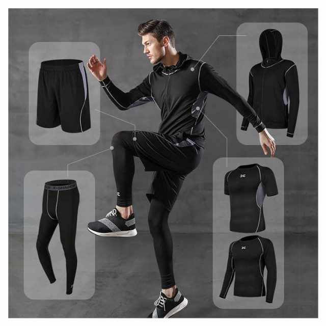 送料無料 5点セット 半袖 コンプレッションウェア ギフト トレーニングウェア ジムウエア メンズ 上下 長袖 ランニングウェア おしゃれランニング ショートパンツ レギンス プレゼント ジョギング フィットネス スポーツウェア