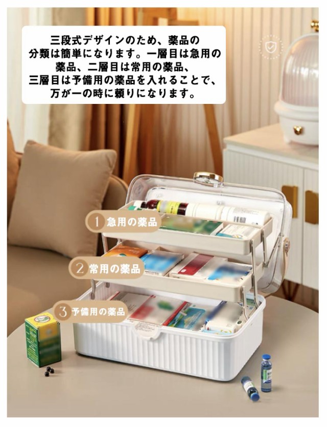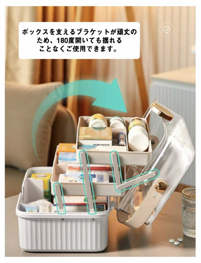 救急箱 北欧風 おしゃれ 大容量 薬箱 救急バッグ 引き出し 仕切り 救急ボックス 3段 収納ボックス クリア 工具箱 応急処置 薬入れ 医薬品収納 お薬ケース 家庭用 防災グッズ 3層折り畳み 取っ手付き