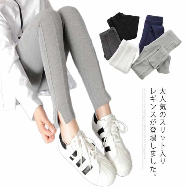 裾スリット入り レギンス スパッツ 送料無料 レディース 無地 ウェストゴム 伸縮性 大きいサイズ リブ レギンス パンツ 着痩せ 美脚 ルームウェア スポーツウェア 春夏 秋冬