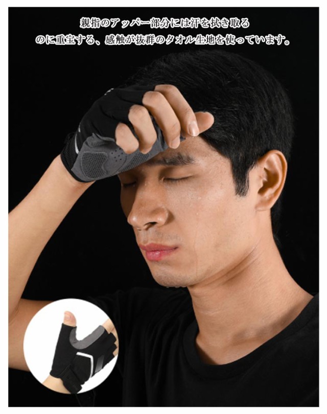 秋 立体 メンズ 手袋 衝撃吸収 半指 自転車 半指 自転車グローブ 春 夏 サイクルグローブ 指切り ハーフフィンガー 3D シリコン 滑り止め付き ロードバイク クロスバイク マラソン スポーツ アウトドア サイクリンググローブ