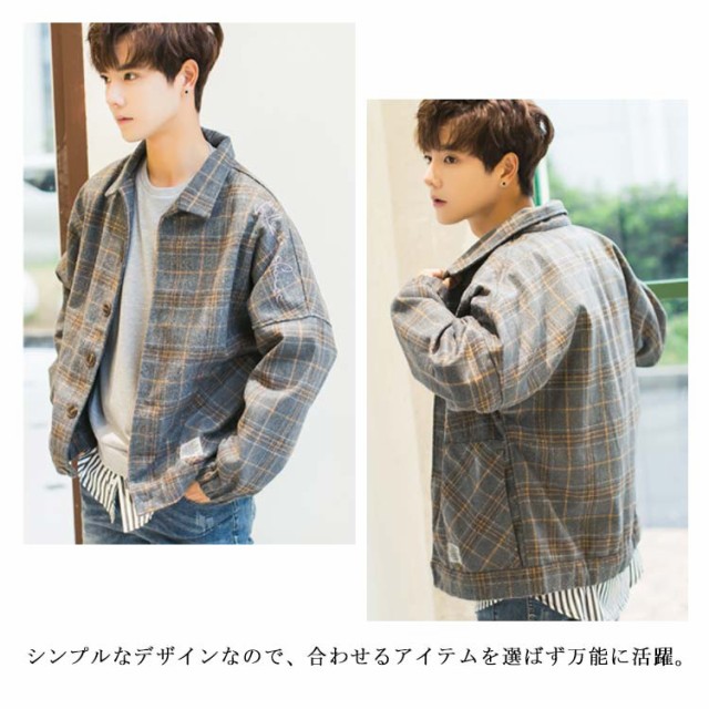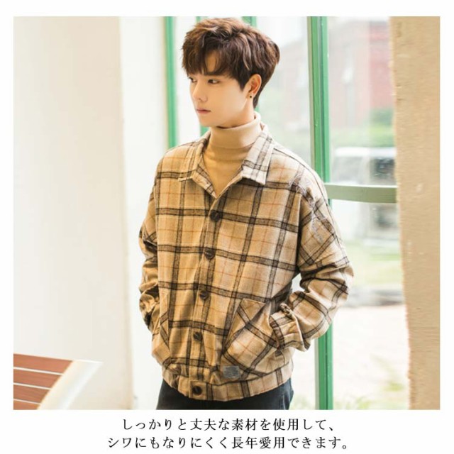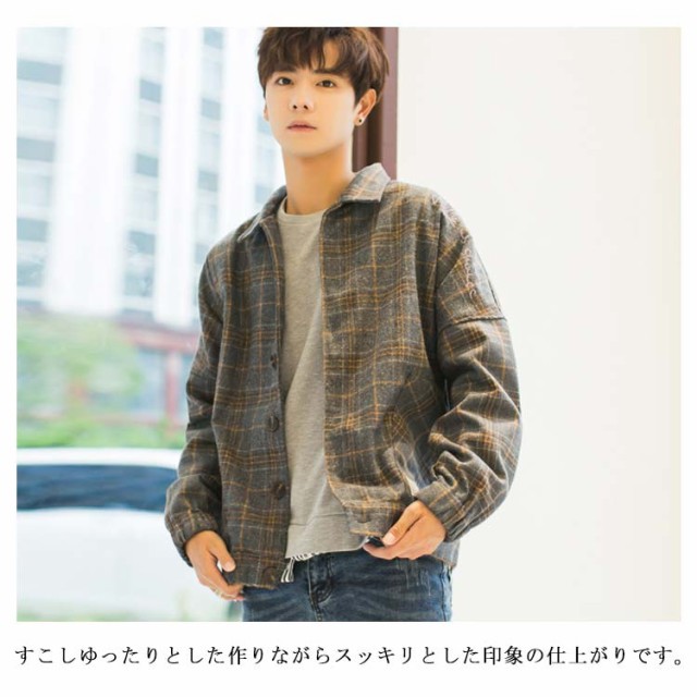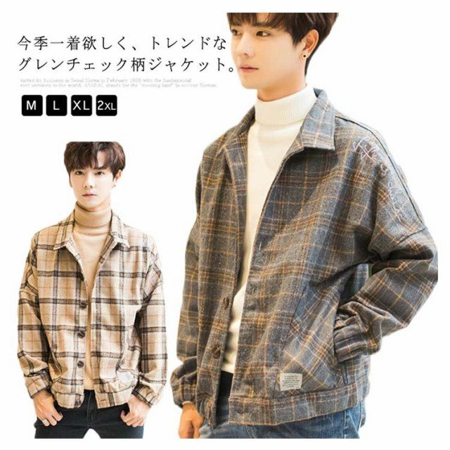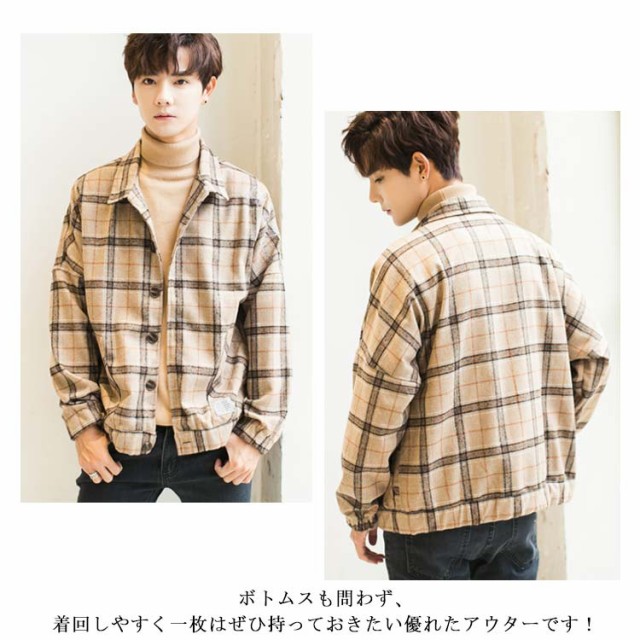 全2色×4サイズ!チェック柄ジャケット メンズ カジュアルジャケット チェック柄 アウター コート ジャケット ショート丈 春服 秋服 春物 秋物 メンズファッション