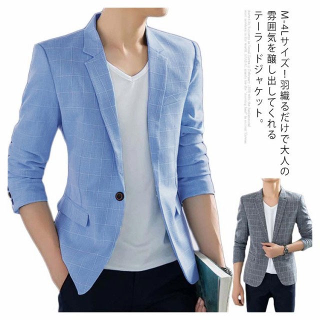 M-4Lサイズ!テーラードジャケット メンズ 春 ジャケット 春ジャケット テーラード アウター 薄手 春夏 チェック柄 無地 スリム 20代 30代 40代