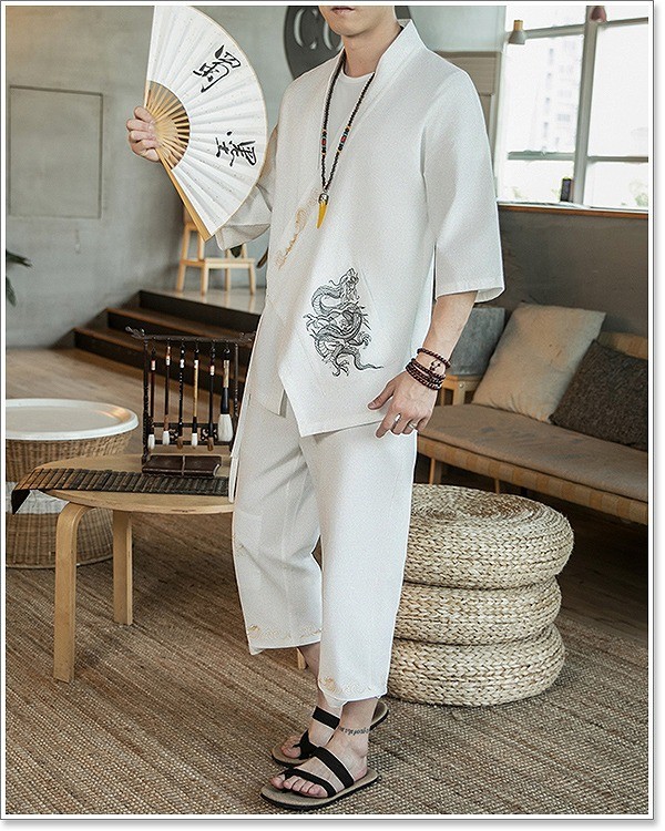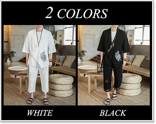 甚平 メンズ 半袖 作務衣 夏用 男性用 麻 浴衣 着物 部屋着 刺繍 夏祭り 花火大会 おしゃれ しじら織り 大きいサイズ セットアップ