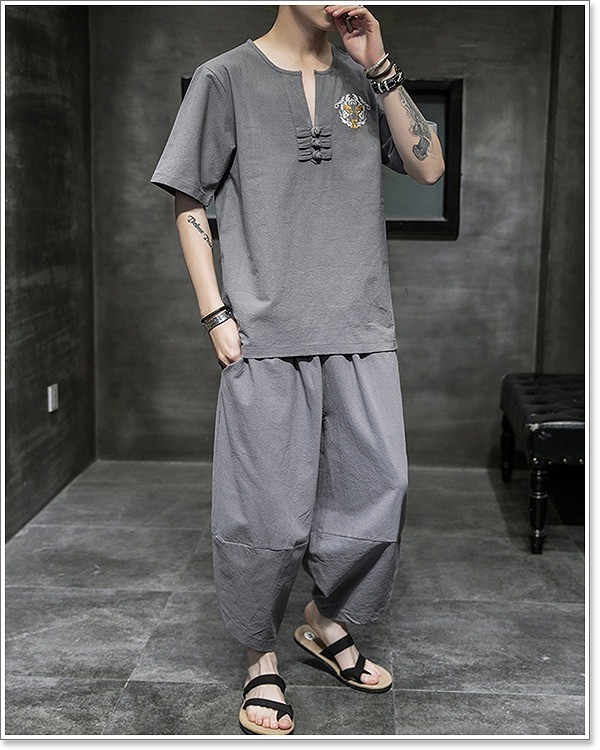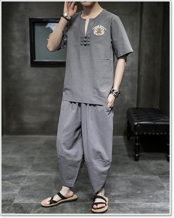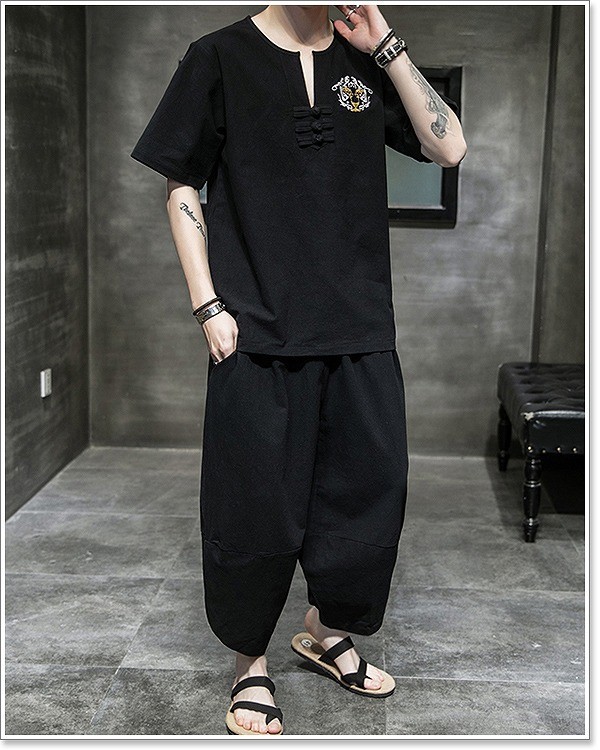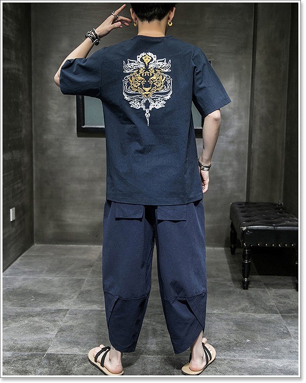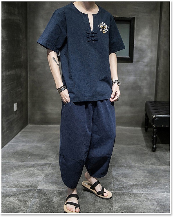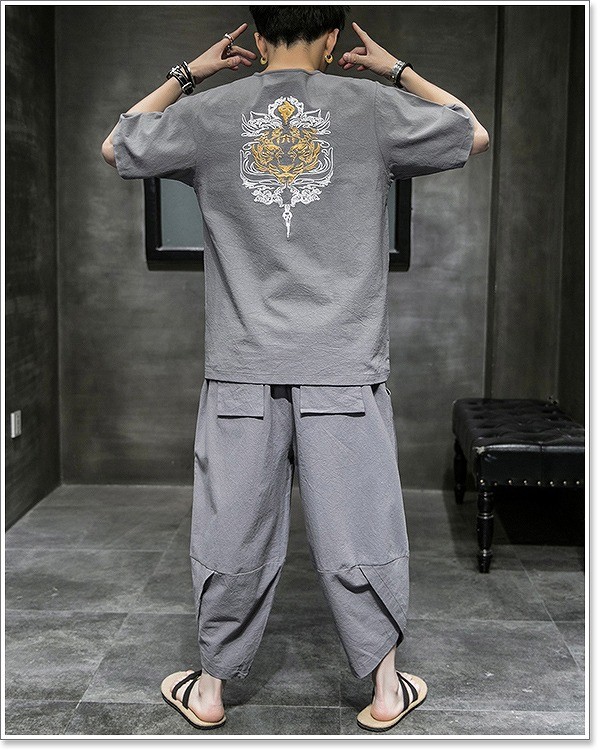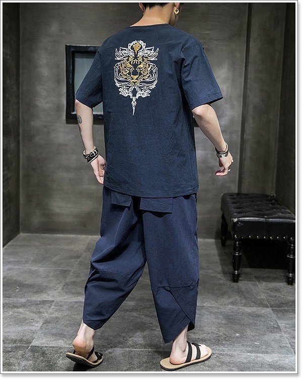 甚平 メンズ 半袖 作務衣 夏用 男性用 麻 浴衣 着物 刺繍 部屋着 夏祭り 花火大会 しじら織り おしゃれ 大きいサイズ セットアップ