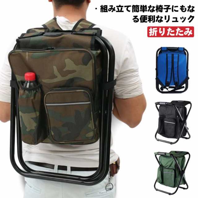 チェアリュック 折り畳み式リュックチェアー リュック椅子 リュック 座れる 保冷バック クーラーリュックサック チェア 椅子 折りたたみ 保冷機能付きバッグ 釣り用 キャンプ 持ち運び ファスナーポケット オープンポケット 携帯 避難 災害 防災 お花見 無地 迷彩柄 全4色