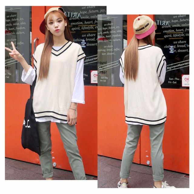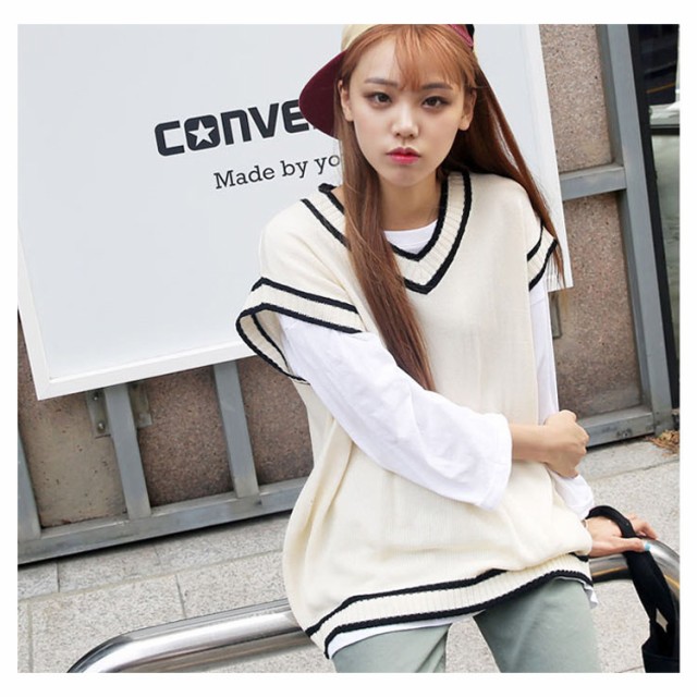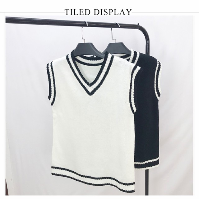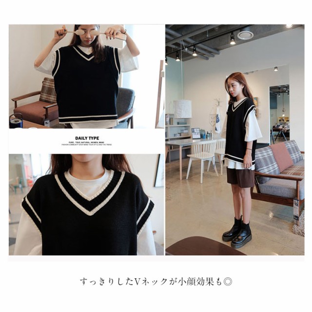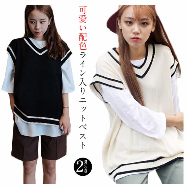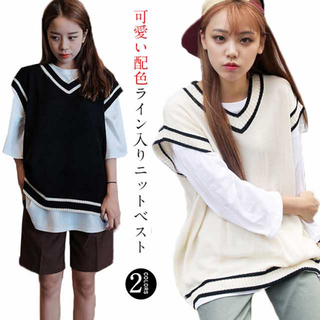 ニットベスト ドロップショルダー 高校生 制服 ゆったり ベスト セーター ノースリーブ 配色ライン Vネック レディース 中学生 シンプル 防寒 秋物 スクールベスト 通学 レディースチョッキ ユニセックス送料無料